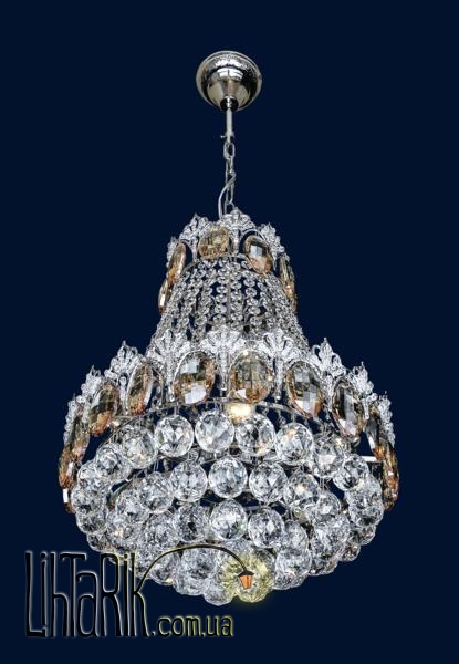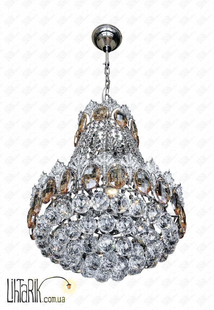 Подвесной светильник с хрустальными подвесами впишется в любую дизайнерскую среду. Светильник изготовлен из металла, стекла, хрусталя высокого качества