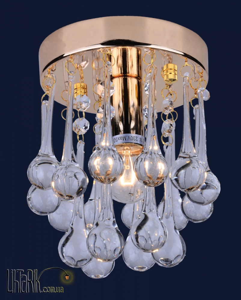 Припотолочная люстра с хрустальными подвесами впишется в любую дизайнерскую среду. Светильник изготовлен из металла, стекла, хрусталя высокого качества
