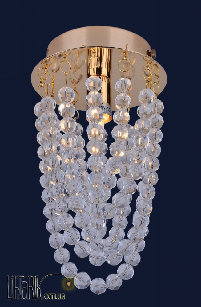 Припотолочная люстра с хрустальными подвесами впишется в любую дизайнерскую среду. Светильник изготовлен из металла, стекла, хрусталя высокого качества