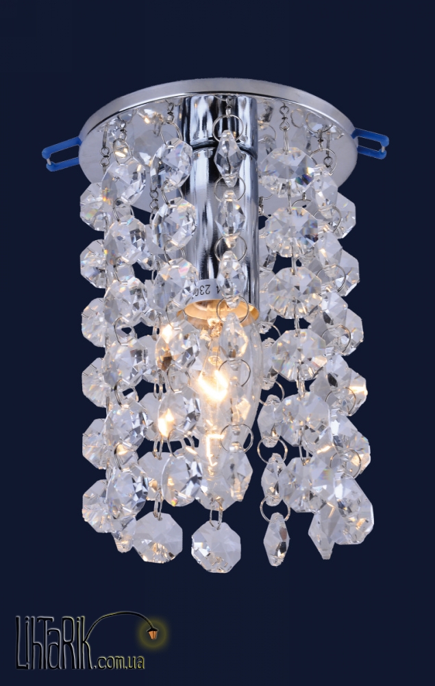 Припотолочная люстра с хрустальными подвесами впишется в любую дизайнерскую среду. Светильник изготовлен из металла, стекла, хрусталя высокого качества