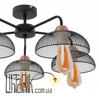 В стандартных панельных квартирах все хорошо, но невысокие потолки сильно ограничивают в выборе люстр. Данная модель BL-592S/5 E27 BK/Cop подойдет для помещений любых размеров, потому что монтажная планка позволяет крепить ее непосредственно на поверхность, не забирая лишних сантиметров, как люстры на подвесе. Черный металл с латунными вставками прибавит интерьеру выдержанности, а пять источников света дадут ровное и яркое основное освещение. Сетчатые плафоны при включении помогут создать интересную игру света и тени. В люстре можно использовать лампы любого типа – накаливания, энергосберегающие и светодиодные мощностью 60 Вт с универсальным цоколем Е27. Такой светильник будет прекрасно выглядеть в гостиной, холле или на кухне.