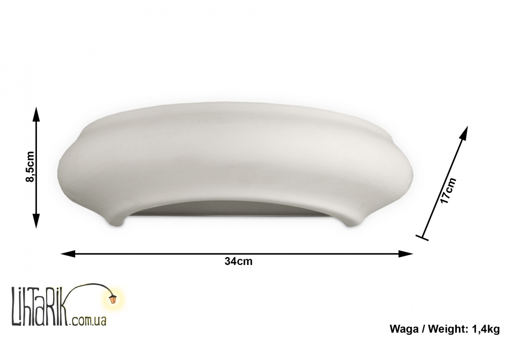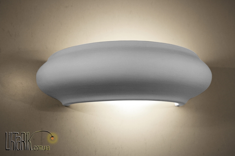 Патрон: E27, 1 x max. 60W, 50 Hz, 220V, IP20. Лампы не в комплекте. Размеры: 8,5 x 34 x 17 cm Материал: керамика/стекло Цвет: белый Бра можно покрасить любыми красками для стен..