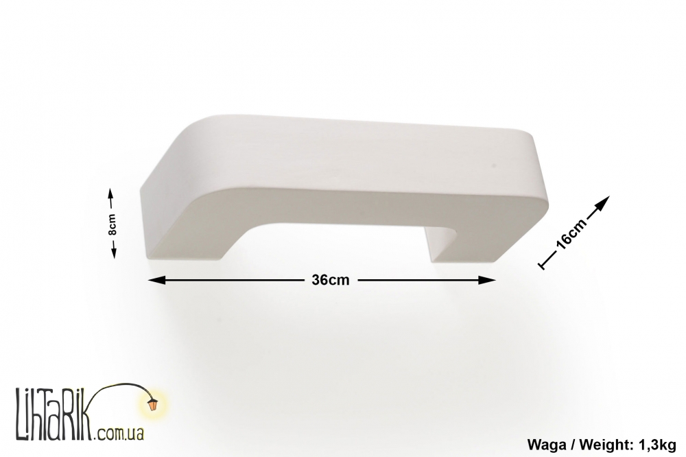 Патрон: E27, 1 x max. 60W, 50 Hz, 220V, IP20. Лампы не в комплекте. Размеры: 8 x 36 x 16 cm Материал: керамика Цвет: белый Бра можно покрасить любыми красками для стен..