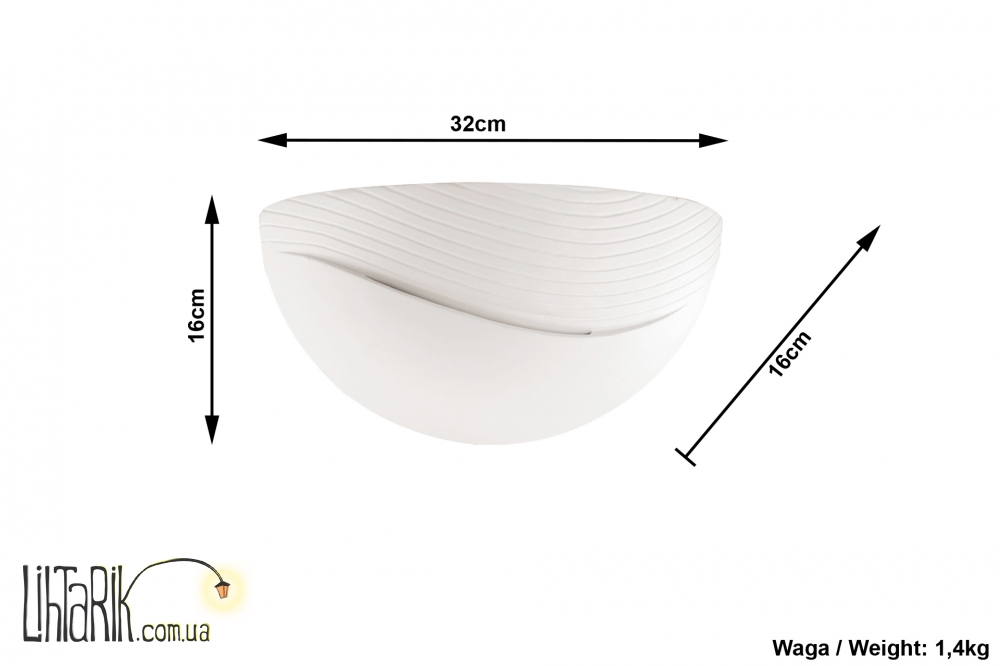 Патрон: E27, 1 x max. 60W, 50 Hz, 220V, IP20. Лампы не в комплекте. Размеры: 32 x 32 x 16 cm Материал: керамика Цвет: белый Бра можно покрасить любыми красками для стен..