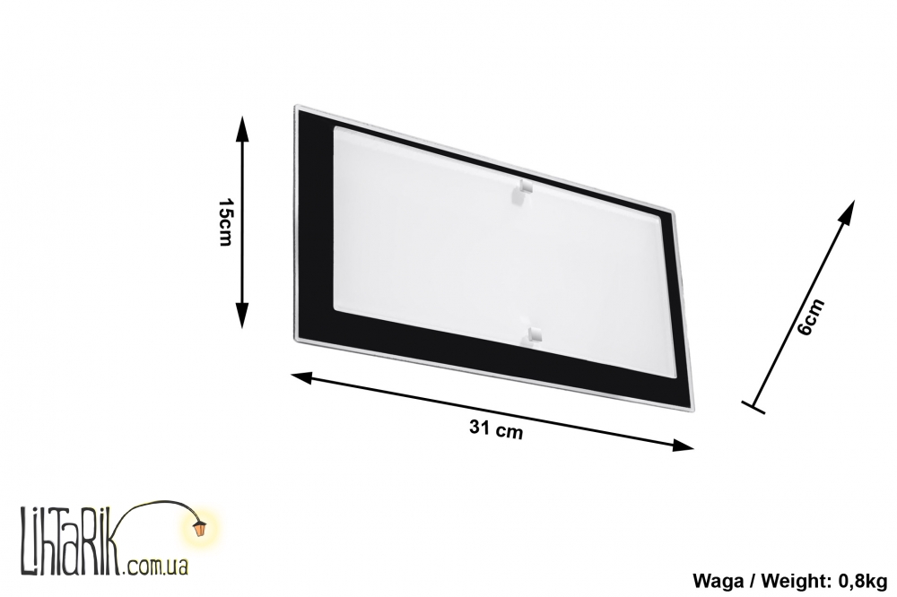 Патрон: E14, 1 x max. 40W, 50 Hz, 220V, IP20. Лампы не в комплекте. Размеры: 6 x 31 x 15 cm Материал: стекло Цвет: белый/чёрный