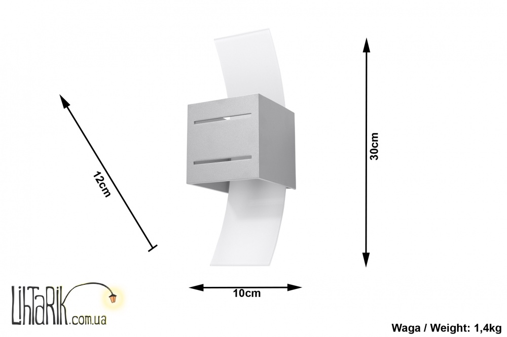 Патрон: G9, 1 x max. 40W, 50 Hz, 220V, IP20. Лампы не в комплекте. Размеры: 30 x 10 x 12 cm Материал: стекло/алюминий Цвет: серый