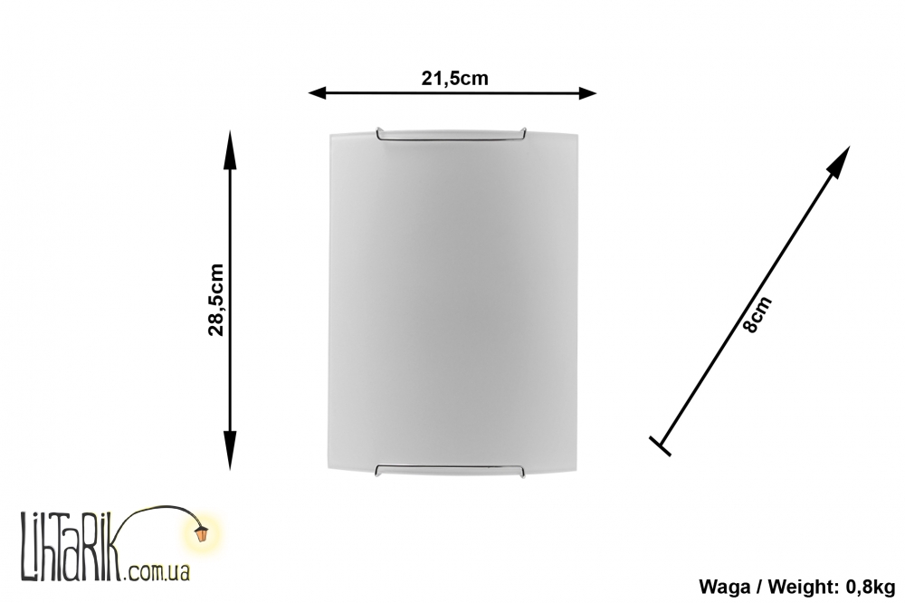 Патрон: E27, 1 x max. 60W, 50 Hz, 220V, IP20. Лампы не в комплекте. Размеры: 28,5 x 21,5 x 8 cm Материал: стекло Цвет: белый