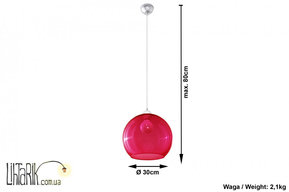 Патрон: E27, 1 x max. 60W, 50 Hz, 220V, IP20. Лампы не в комплекте. Размеры: 30 x 30 x max. 80 cm Материал: металл/стекло Цвет: Czerwony