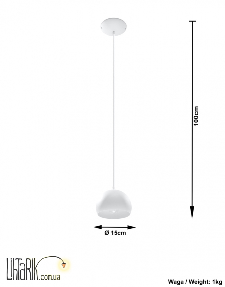 Патрон: E27, 1 x max. 60W, 50 Hz, 220V, IP20. Лампы не в комплекте. Размеры: 15 x 15 x max. 100 cm Материал: металл Цвет: белый