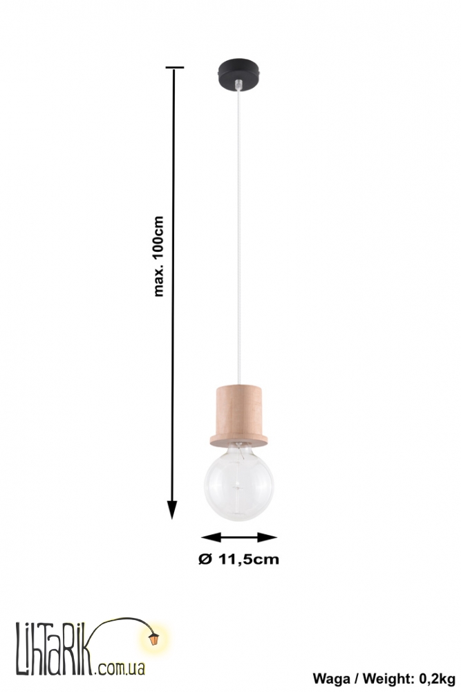 Патрон: E27, 1 x max. 60W, 50 Hz, 220V, IP20. Лампы не в комплекте. Размеры: 11,5 x 11,5 x max. 100 cm Материал: дерево Цвет: Naturalne дерево