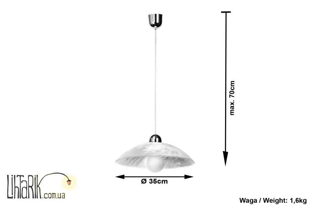 Патрон: E27, 1 x max. 60W, 50 Hz, 220V, IP20. Лампы не в комплекте. Размеры: 35 x 35 x max. 70 cm Материал: стекло Цвет: белый