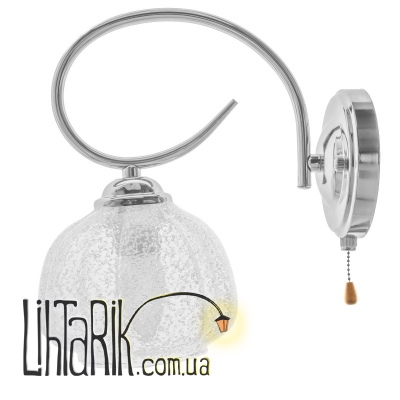 «Уютное» бра LK-591W/1 E27 CH - для уюта в доме. Послужит хорошим источником дополнительного освещения. Обладает скромным дизайном, что играет в плюс, ибо благодаря этому, светильник можно поместить как в классический, так и в любой современный интерьер. Материалами для его изготовления традиционно послужили металл и стекло. Конструкция представлена небольшим металлическим каркасом цвета хром и одним стеклянным прозрачным плафоном, украшенным едва заметным нежным узором белого цвета. Плафон направлен вниз, рассеивает мягкий свет. Для работы необходимо использовать одну лампочку с цоколем Е27 (накаливания, энергосберегающую, светодиодную). Дополнительно модель оборудована цепочкой-выключателем.