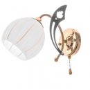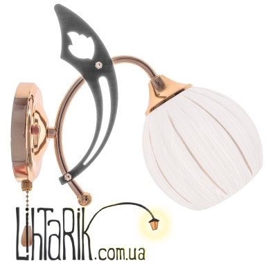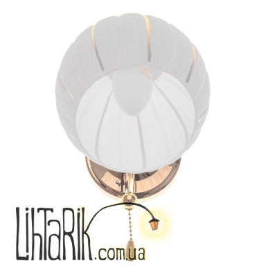 Бра LK-620W/1 E27 FG выполнено в классическом стиле, внешне напоминает утонченный тюльпан. Его каркас металлический, золотистого цвета, плафон из стекла матового белого цвета, декорирован золотистыми полосками. Плафон бра направлен вниз, свет рассеянный и мягкий, источником света является одна лампа с цоколем Е27, мощность лампы 60 Вт (накаливания, энергосберегающая, светодиодная). Включать и выключать осветительный прибор необходимо с помощью настенного клавишного выключателя или цепочки, прикрепленной к основанию.