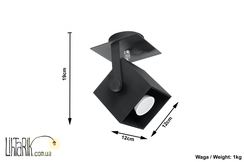 Патрон: GU10, 1 x max. 40W, 50 Hz, 220V, IP20. Лампы не в комплекте. Размеры: 12 x 12 x 19 cm Материал: металл/алюминий Цвет: чёрный