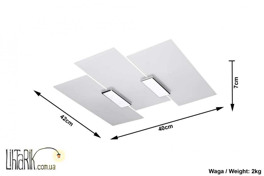 Патрон: E27, 3 x max. 60W, 50 Hz, 220V, IP20. Лампы не в комплекте. Размеры: 7 x 42 x 40 cm Материал: стекло/Metal Цвет: белый