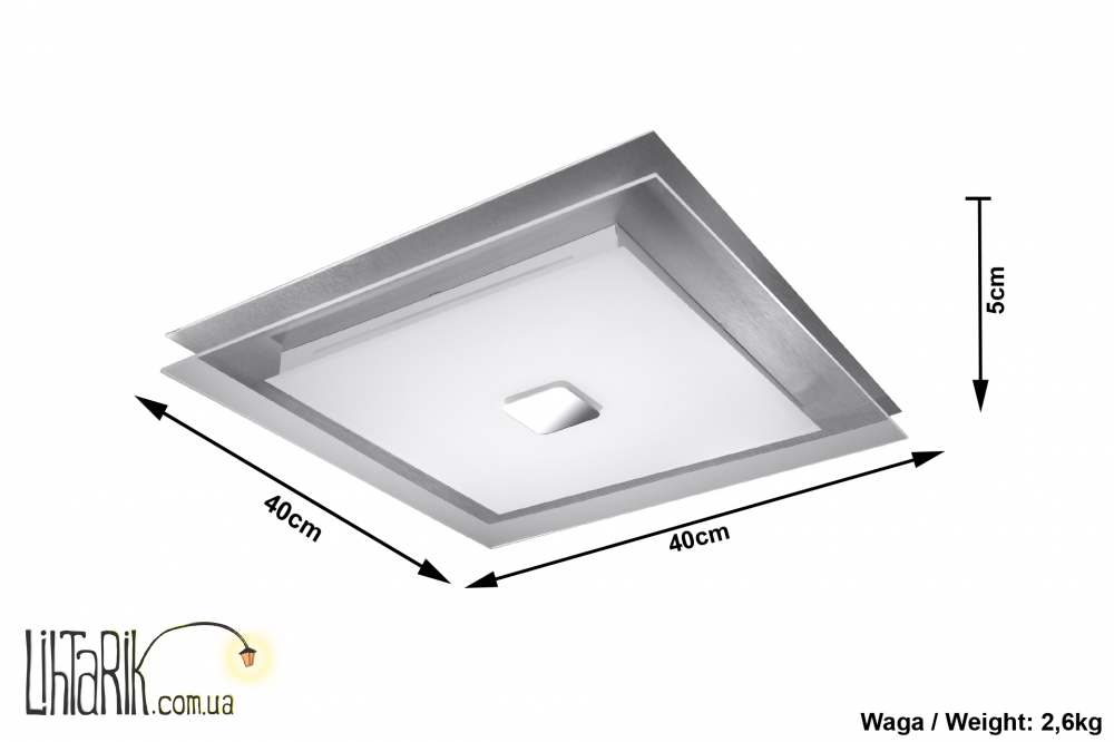 Патрон: LED 18W, 3000K, 50 Hz, 220V, IP20. arwka jest w komplecie. Размеры: 5 x 40 x 40 cm Материал: Metal/стекло Цвет: белый