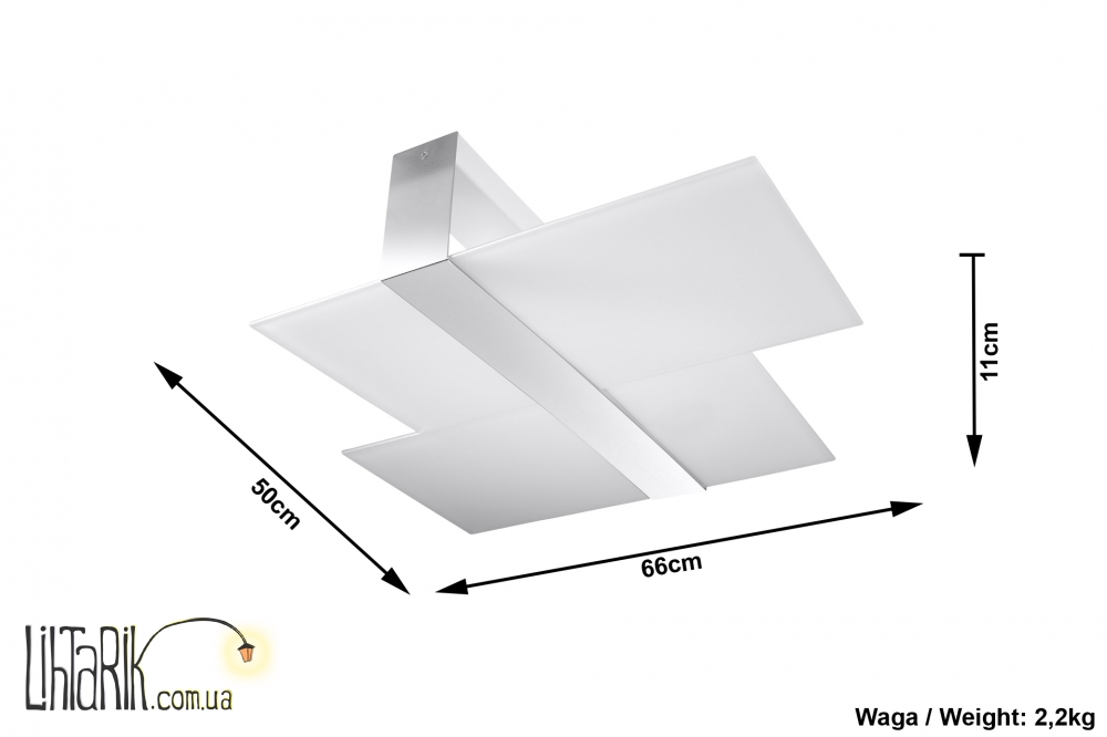 Патрон: E27, 2 x max. 60W, 50 Hz, 220V, IP20. Лампы не в комплекте. Размеры: 11 x 50 x 66 cm Материал: Metal/стекло Цвет: белый