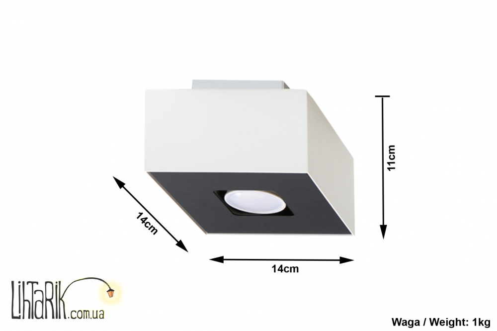 Патрон: GU10, 1 x max. 40W, 50 Hz, 220V, IP20. Лампы не в комплекте. Размеры: 11 x 14 x 14 cm Материал: металл Цвет: белый/чёрный