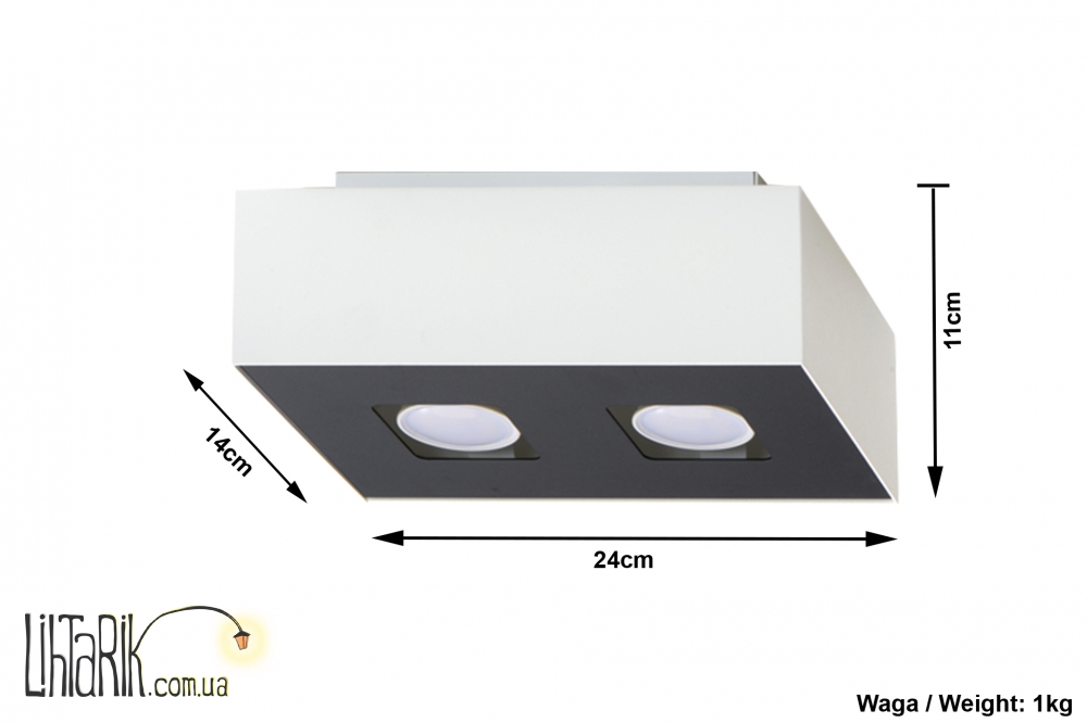 Патрон: GU10, 2 x max. 40W, 50 Hz, 220V, IP20. Лампы не в комплекте. Размеры: 11 x 24 x 14 cm Материал: металл Цвет: белый/чёрный
