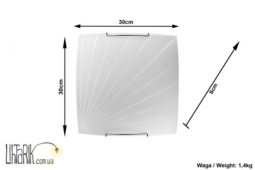 Патрон: E27, 1 x max. 60W, 50 Hz, 220V, IP20. Лампы не в комплекте. Размеры: 30 x 30 x 8 cm Материал: стекло Цвет: белый