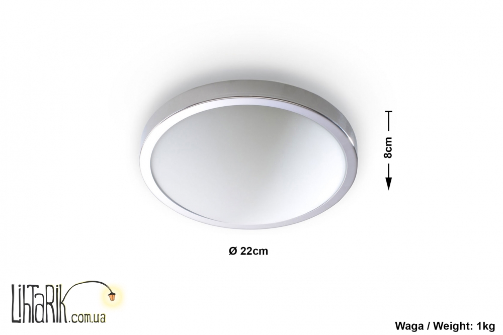 Патрон: E27, 1 x max. 60W, 50 Hz, 220V, IP20. Лампы не в комплекте. Размеры: 8 x 22 x 22 cm Материал: металл/стекло Цвет: Chrom