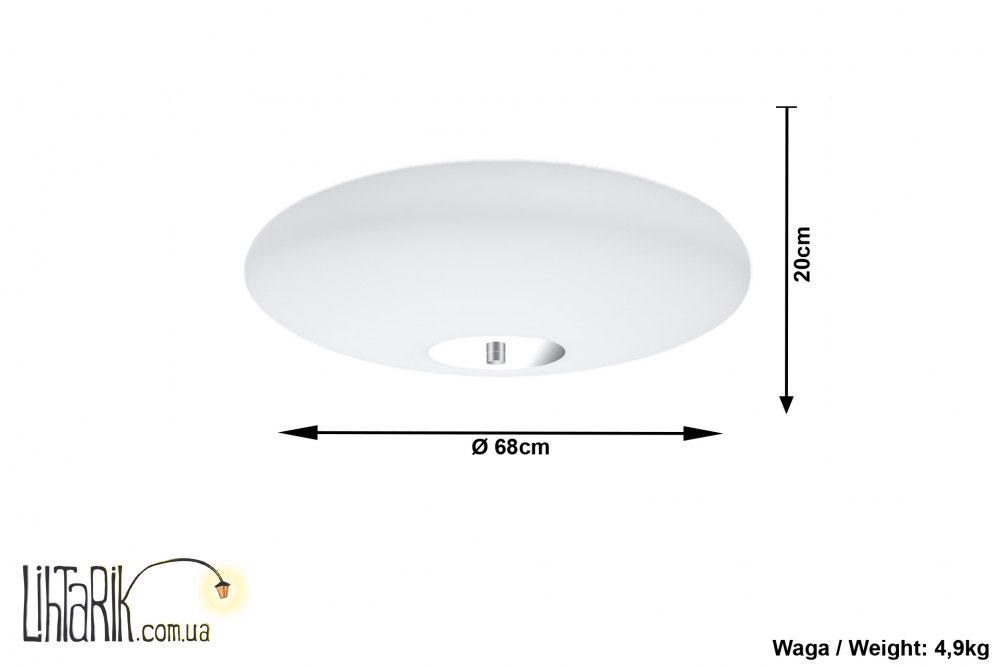 Патрон: E27, 3 x max. 60W, 50 Hz, 220V, IP20. Лампы не в комплекте. Размеры: 20 x 68 x 68 cm Материал: металл/стекло Цвет: белый/Chrom