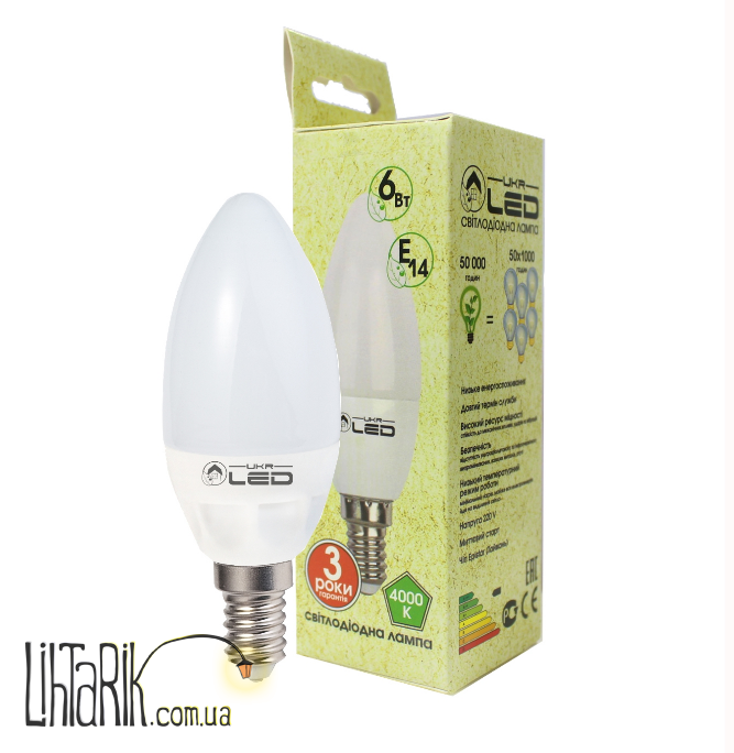 UkrLED Светодиодная лампа 6Вт, Е14(свеча),4000К (188)