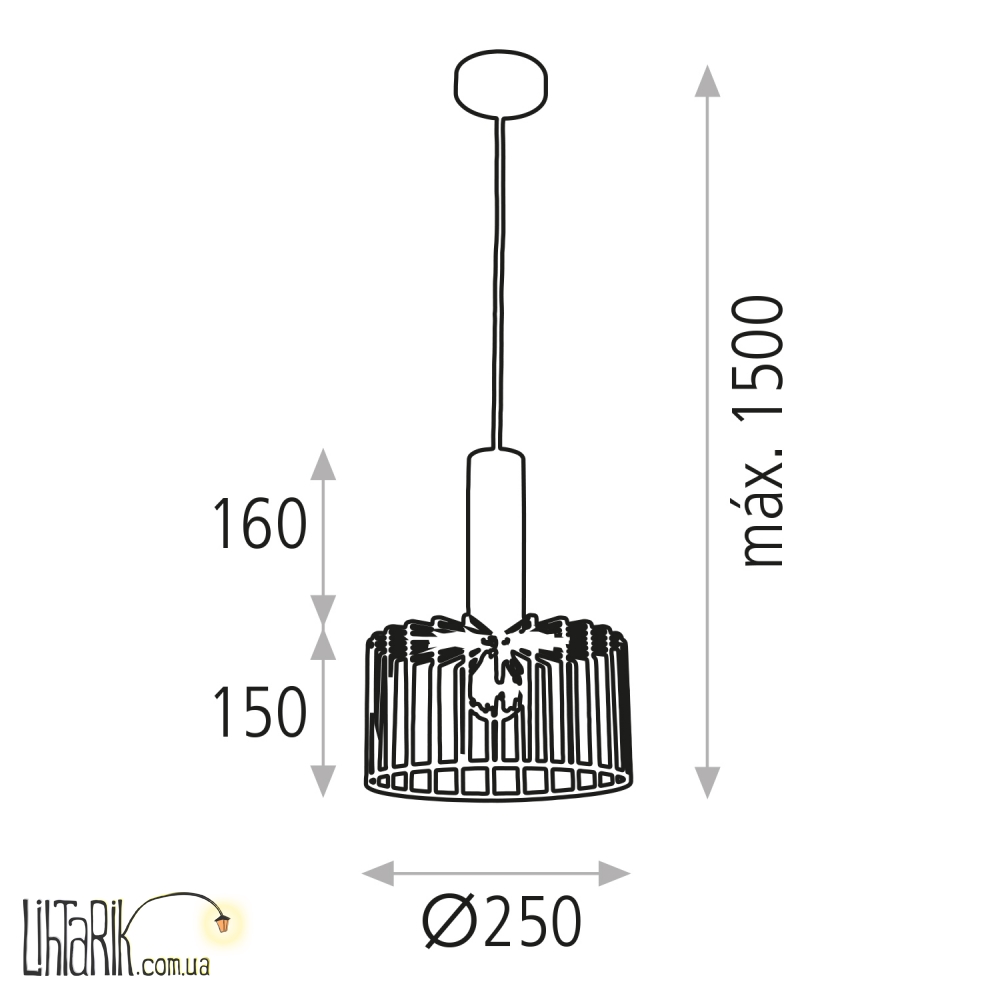 Светильник подвесной бочковидного вида, с минималистским каркасным дизайном впишется в любую дизайнерскую среду.